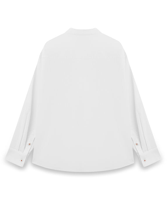 Mandarin Collar Unisex Poplin Shirt - White