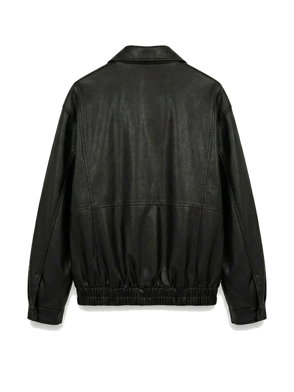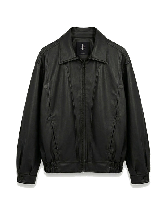 Zamansız ve işlevsel suni deri ceket. Çıtçıtları açılğında 5+5 cm genişler: daha bol bir görünüm elde edilebilinir.